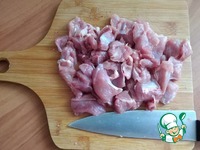 У меня филе бедра индейки. Порезала мясо кусочками ~ 2,5-3 см. Отправила в кастрюлю с фасолью. Варим до готовности мяса ~20 минут. Мясо в этот сут можно взять тоже любое. |