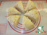 Тесто достаем из холодильника, делим на шесть частей. |