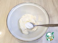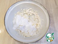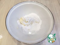 В миску добавить мягкое сливочное масло (120 г.) и сахарную пудру (70 г.) Взбить масло и сахарную пудру до бела. |