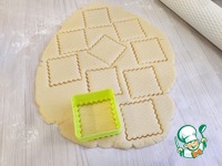 Тесто раскатать в пласт толщиной примерно 0,5-0,7 мм. Выемкой для печенья вырезать различные фигурные изделия. |