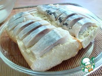 Время приготовления бутербродов даю без времени вымачивания сельди. Селедку солёную разделать на 2 филе, хорошо очистить от косточек. Замочить в молоке часа на 2. Кусок багета ~20 см длиной разрезать вдоль на 2 куска. Сварить яйца вкрутую, почистить и взять только желтки. Желтки размять и добавить горчицу, хорошо перетереть вилкой, постепенно добавляя масло. |