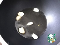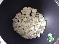 Выкладываем мелко порезанный лук и золотим его до мягкости. Чеснок убираем (выкидываем). |