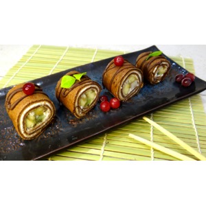 Описание: Шоколадные сладкие роллы из блинов с фруктами и творогом- это оригинальный десерт, готорый понравится как взрослым, так и детям. Отлично подойдет на завтрак и на праздничный стол.