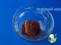 Тесто делим на 2 части. 1 тесто добавьте 1ст. л какао. Вмешайте какао в тесто. |
