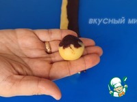 Сделайте из теста 2 колбаски, сформируйте маленькое круглое печенье. |