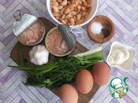 В салатнике соединяем фасоль, тунца, мелко нарезанные яйца. |