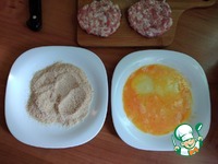 Берём сковороду. Я для свиных отбивных буду использовать сковороду-гриль. При обжаривании сало будет вытапливаться и стекать в лунки. Это значит, что отбивные будут менее жирными. Конечно же можно использовать любую сковороду! Греем сковороду и обмазываем её поверхность подсолнечным маслом кисточкой. Так лучше отбивные перевернутся и снимутся со сковороды. Сформированные отбивные снимаем с доски ножом, помещаем в яйцо, а затем - в сухари и сразу же выкладываем на сковороду. Обжариваем буквально пару минут на среднем огне до появления хрустящей румяной корочки. |