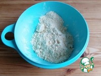Просеиваем муку смешиваем с разрыхлителем, добавляем масло. |
