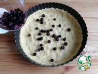 Половина ягод выложить на тесто. Я использовала замороженные ягоды и предварительно их не размораживала. |
