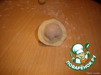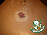 В середину получившейся лепешки кладем чайную ложку фарша. |