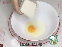 В миске смешиваем яйцо, соль, ванильный сахар и сахар. Все хорошо перемешиваем, пока масса не побелеет. |