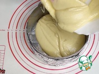 Заполняем форму тестом. Диаметр формы 18 см. Далее отправляем в заранее разогретую духовку при 170 гр на 40 минут. |