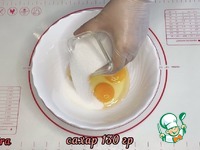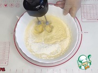 В муку добавляем разрыхлитель, перемешиваем. Далее муку просеиваем в яичную смесь. Все хорошо перемешиваем. |