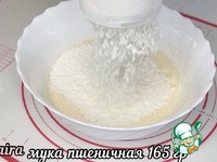 Добавляем просеянную муку и разрыхлитель. Перемешиваем до однородной массы. |