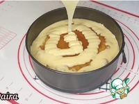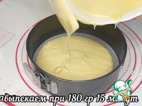 Половину теста выкладываем в форму для запекания, и выпекаем в заранее разогретой духовке при 180 гр 15 минут. |
