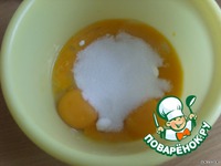 Не спеша, в яичную массу (желток) вводим часть взбитых белков |