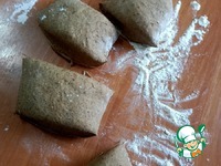 Рабочую поверхность немного подпыляем мукой, выкладываем наше тесто и формируем хлеб, в моем случае я разделила на 4 части. Не забивайте тесто мукой! |
