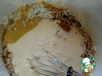 Добавить хлопья ( у меня с кусочками сушеных фруктов, так что можно смело добавлять наполнители по вашему вкусу), рисовую муку |