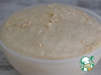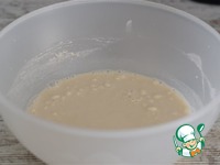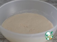 Приготовить опару. В кипяченой воде комнатной t° растворить свежие дрожжи, добавить 10 г сахара и 100 г муки. Перемешать. Затянуть чашу с опарой пищевой пленкой и оставить для подхода на 15 минут. |