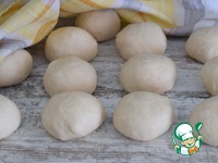 Выложить тесто на рабочую поверхность, обмять, разделить на 12 равных частей. |