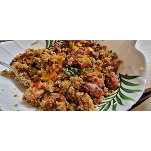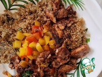 Отправляем перчик к киноа. Протираем сковородку и жарим рыбу вместе с маринадом до полной готовности |