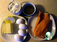 4. Измельчаем 2 яйца с семгой, солью и перцем с помощью блендера.