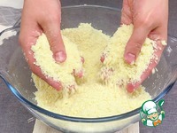 В крошку вводим сметану, замешиваем тесто. Тесто получается мягкое, маслянистое, не липкое. Убираем в холодильник на 40 минут или дольше. |