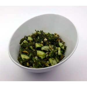 Готовила из свежей ламинарии, но при необходимости можно попробовать приготовить салат из сухого варианта, предварительно замочив его в воде на 3 часа. Или использовать готовую маринованную морскую капусту. В этом случае не нужно добавлять ни масло, ни лимонный сок, так как они там уже содержатся (точнее уксус вместо лимонного сока). |