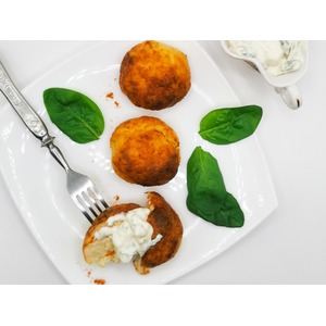 Подаем рыбные шарики горячими с холодным соусом тартар. |