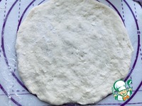 Присыпаю стол мукой и руками формирую из теста лепешку диаметром 18 см. |