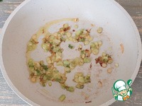 Нарезанные светлые части лука и чеснок обжарить на оливковом масле (1 ст. л.) до золотистости. |
