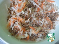 Гречневую крупу заранее отварить, соединить с квашеной капустой. |