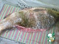 Рыбу почистить, вымыть, разрезать вдоль спинного плавника, извлечь хребет, выпотрошить через спинку |