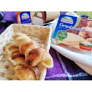 Выкладываем в центр сыр, чередуя его. И скрепляем края, запечатывая сыр внутри. |