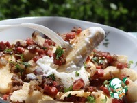 Описание: Сами вареники традиционные -нежные, творожные, быстро готовятся, но подавать их предлагаю с обжаренными копченостями-они придают аромат и оттеняют нежность вареников. Вкусно, сытно, делается очень быстро. Америки не открыла, но, может, кому пригодится. Пробуем?