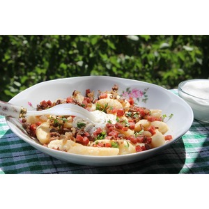 Выкладываем на вареники, посыпаем молотым перцем и подаем со сметаной! |