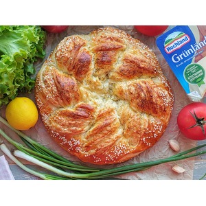 Описание: Предлагаю вариант ароматной выпечки – пирог с чесноком и сыром. Он получается вкусным, воздушным, румяным и мягким. Очень удобно взять его с собой на природу. Угощайтесь!