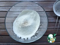 Муку вместе с разрыхлителем просеиваю в миску. Добавляю соль и щепотку молотого черного перца. |
