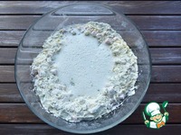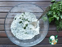 Измельчаю зелень и перекладываю в муку, тщательно перемешиваю до равномерного распределения. |