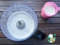 Яйца взбиваю в плотную пену с 0,5 ч. л. сахара, вливаю молоко. |