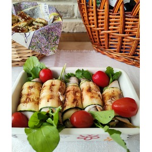 Свернуть рулетики. Сложить в подходящую посуду и полить оливковым маслом. Ну вот и все. Можно наслаждаться! |
