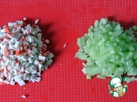 3 треугольника плавленого сыра предварительно положить в морозильник. Натереть на терке. |