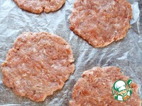 Разделить на равные части. Сформировать плоские котлеты. Учтите, что в процессе они ужарятся и надо сделать их большего диаметра, чем булочки. Убрать в морозилку, чтобы они полностью застыли. |
