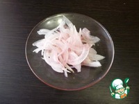 Замариновать лук в каком-нибудь ароматном уксусе, добавив щепотку сахара. У меня винный уксус. |