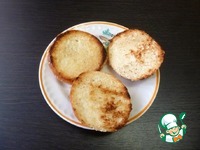 Булочки для гамбургеров разрезать пополам и обжарить до румяности. |
