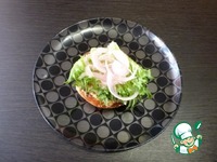 Бургер с печеночной котлетой и яблоком готов. Для удобства скрепить все слои шпажкой. Приятного аппетита! |