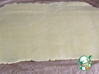 Духовка разогрета на 180. Приготовить форму. У меня 16х26. Намочить пергамент, отжать его, на нем раскатать тесто через пленку. Выложить тесто вместе с пергаментом в форму, сделав бортики. |