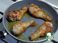 В сковороде растопить топленое масло и обжарить в нем куриные голени со всех сторон до образования румяной корочки. |