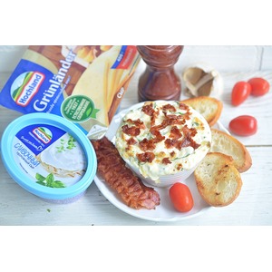 Описание: Необякновенно вкусный соус-дип отлично подойдет к сухарикам, крекерам, чипсам, а можно использовать его и как намазку на хлеб. Нежный тягучий сыр, пикантная зелень и хрустящие кусочки бекона - это, и правда, очень вкусно!