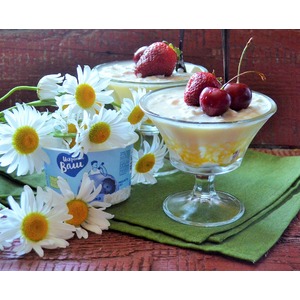 Время указано без учёта стабилизации десерта в холодильнике. Творог отцедить от сливок. Разложить порции по креманкам. |